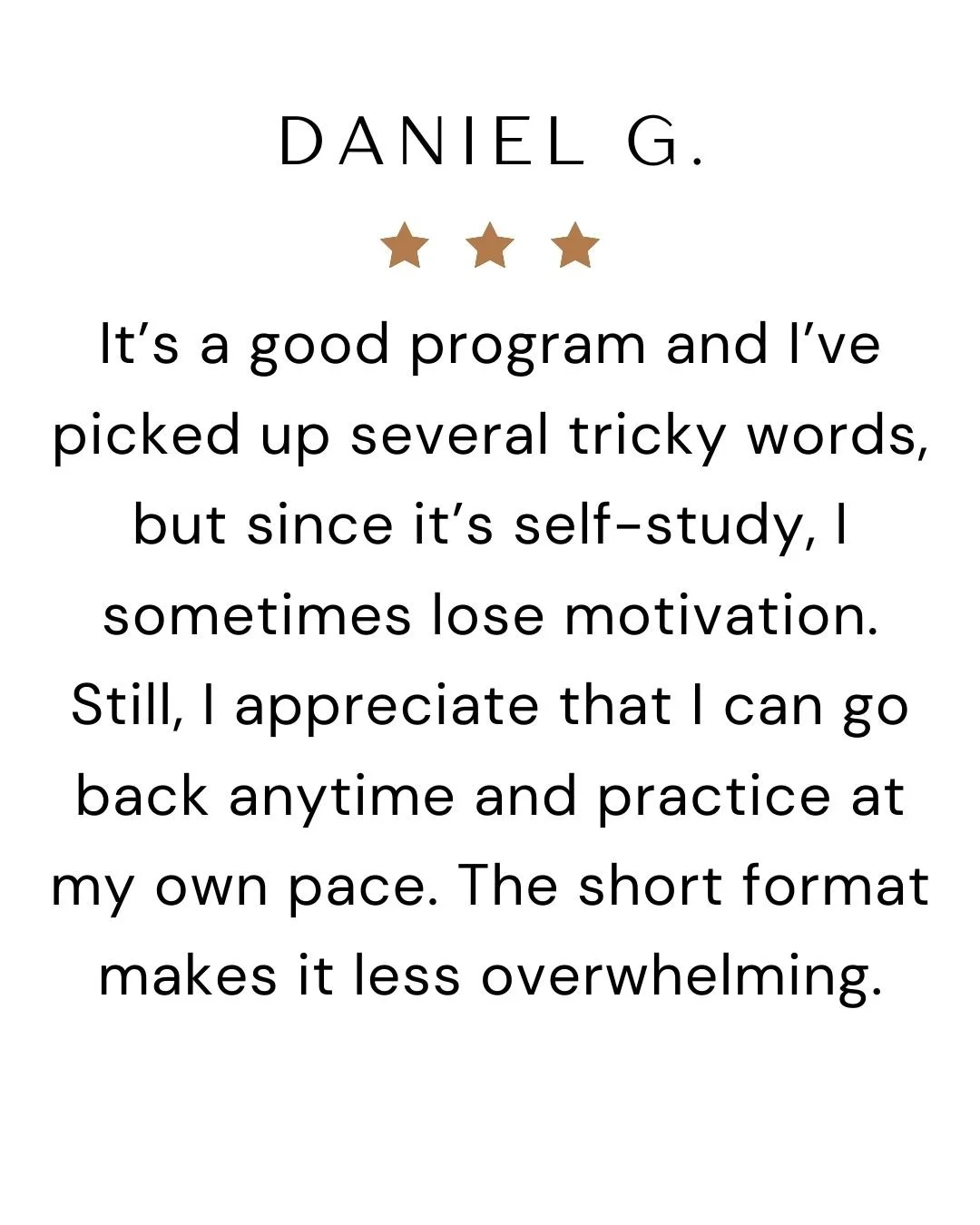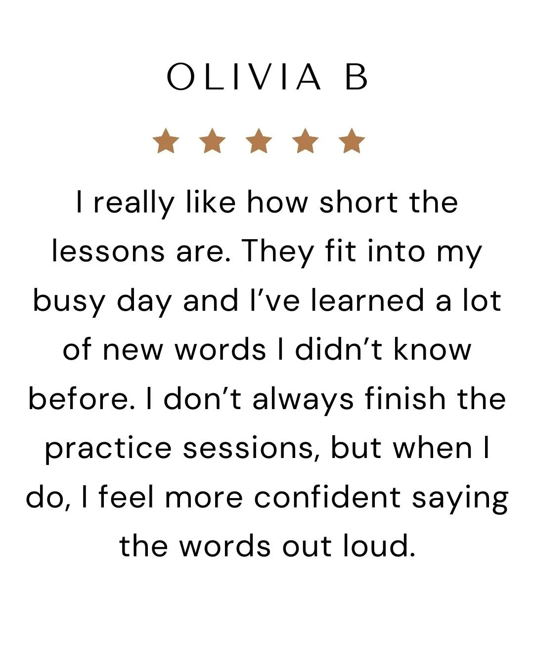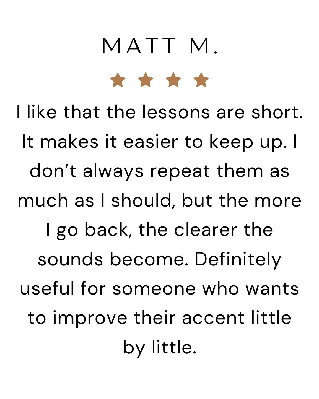 Our bite-sized lessons train your ear, tongue, and confidence — so you speak with clarity and confidence.